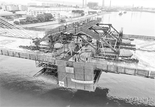 图为东莞槎马特大桥主跨合龙段施工现场。