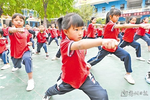 “练好武术,振兴中华;文武双修,共同进步……”伴随一声整齐且响亮的口号,全场200多个不同年龄段的孩子开启了一天的晨练——青少年武术操。日前,记者走访位于梅江区城北镇干光村的梅州市粤东少林文武学校,了解该校之办学特色。