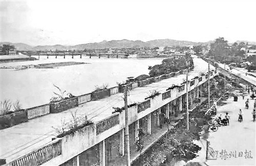 梅江大堤原是泥土堤,防洪标准仅为“20年一遇”。1986年8月曾决堤,洪水泛滥,造成梅城重大水灾。随着城市建设不断发展,市委市政府决定从整治梅江,提高百年一遇防洪标准为起点,堤路共建,打造靓丽梅江两岸,绘就蓝图,逐步实施。下决心关停对梅城污染比较严重的水泥厂、磷肥厂、造纸厂等。梅州经济欠发达,下如此大决心,改善城市环境,彰显当年市领导的魄力和远见。