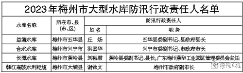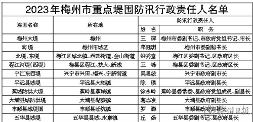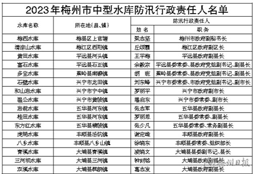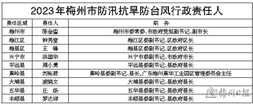 为做好2023年防汛防旱防台风工作,严格落实三防责任,保障人民群众生命财产安全,根据《中华人民共和国防洪法》《中华人民共和国防汛条例》《中华人民共和国抗旱条例》《广东省防汛防旱防风条例》关于防汛防旱防风工作实行各级人民政府行政首长负责制,以属地管理为主,统一指挥、分级负责的规定,现将我市2023年地区防汛抗旱防台风行政责任人、重点堤围、大中型水库及重点小型水库防汛行政责任人名单向社会公布,请各级行政责任人切实履行职责,认真做好防汛抗旱防台风工作,自觉接受社会的监督。