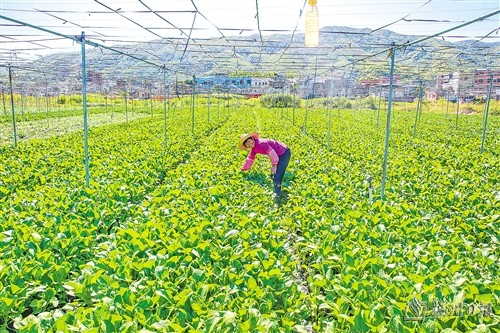 本报讯 日前,在丰顺县“供销农场”示范基地——丰良镇莘桥村绿天源蔬菜基地,各式时令蔬菜长势喜人(如图,吴腾江摄)。