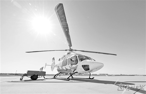 图为在停机坪拍摄的“吉祥鸟”AC332直升机。