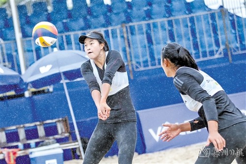 当日,在世界沙滩排球巡回赛巴西伊塔佩马站小组赛D组比赛中,中国组合王鑫鑫/朱玲娣以2∶1战胜巴西组合安德烈莎/维托里亚。(新华社发)