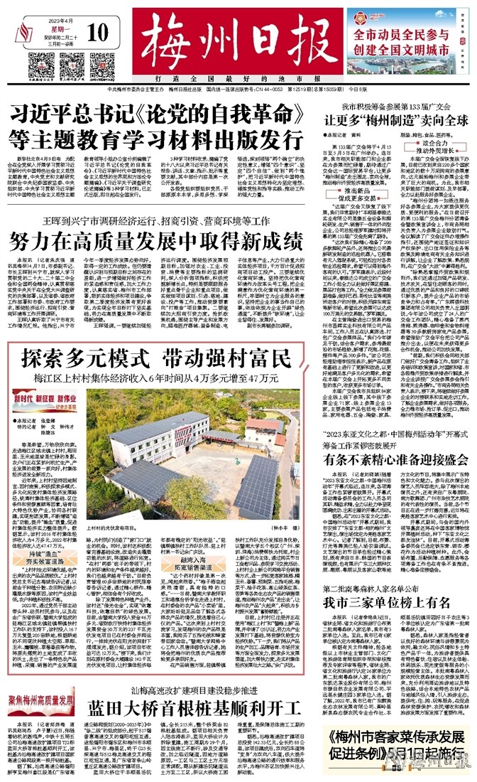 2022年,通过党员干部主动带头种、动员村民参与,以及在由广东省侨联、暨南大学组成的驻梅江区城北镇驻镇帮镇扶村工作队的支持下,该村投入16.7万元复垦205亩耕地,根据耕地的不同现状种植太空稻、旱稻、玉米、鹰嘴桃、草莓番茄等作物,将原先撂荒的土地变成了丰收的沃土,走出了一条特色农产品种植、采摘、销售的产业发展道路,为村民们创造了“家门口”就业的机会。同时,该村还积极配套完善基础设施,改造失去灌溉功能的水圳,将道路进行拓宽。“在村‘两委’班子的带领下,村内的环境和生产条件越来越好,我们也越来越有干劲。”目前负责管理60多亩耕地的村民陈春香告诉记者,通过精心耕作、精心管护,相信会有个好收成。