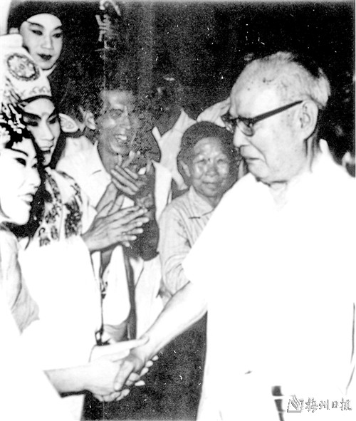 广东汉剧原称外江戏,是清乾隆年间由中原地区流入广东、福建、江西的皮黄剧种,用中州音韵演唱,以音乐唱腔优美动听著称,是积淀深厚有“儒乐”之称的高雅艺术,深受客属地区人民的欢迎。在客属地区传统节日、神诞祭祀、婚丧嫁娶、生日宴请等,经常要请人表演广东汉剧来庆贺。比如揭西河婆有个传统的“娘嫲生”神诞节庆,每年要在广场上请广东汉剧班社来演天光戏,场面十分热闹,比春节还要隆重。20世纪50年代广东汉剧班社林立,比较活跃的有大埔民声汉剧团、梅县艺光汉剧团、蕉岭长风汉剧团等几十个团体,影响非常广。