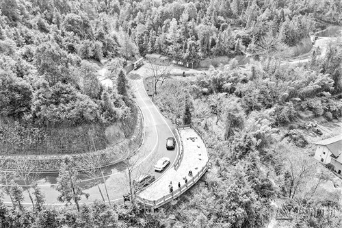 党旗飘扬风帆劲,大道通衢向未来。来到皇佑村察看主村道Y188线“单改双”改造工程现场,一条宽阔平整、标线清晰的盘山柏油公路映入眼帘。游客还能下车步行至一旁的栈道休憩。