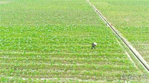 在八尺镇八尺村,连片烟田被风吹起阵阵绿波,目之所及,让人心旷神怡。“现在是打顶封叶阶段,以促进烟株各阶段生长发育正常。”烟农刘国亮正带着几个村民查看烟叶长势。平远县烟草专卖局工作人员陈俊君表示:“烟叶采摘开烤预估最快在4月20日以后,整体采摘开烤要在5月上旬。”