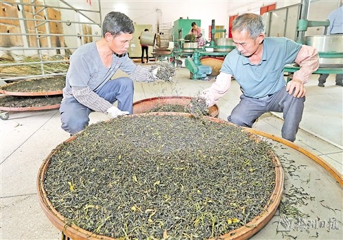 “炒锅温度的高低、炒制时间的长短都是凭经验完成,这关系到茶叶的口感和香气。”在丰顺县龙岗镇马图村马图茶传习所内,何运新正耐心地向农户讲授马图茶的制作步骤。何运新说,各个环节都要求精益求精,每一道工序苛求严谨。“工艺越好,茶品质越佳。好的制茶工艺能把茶的内涵物质包裹得紧实,极大地保留茶的原味不被破坏。”