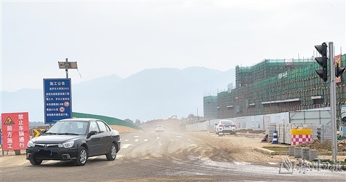 近日,记者来到罗乐大桥至S333连接线看到,部分路段布满大大小小的石子,上面还覆盖了一层厚厚的泥土,载重大货车、水泥搅拌车、小汽车和摩托车经过时,路面上会扬起黄色尘土,影响着后方行人和车辆的视线。