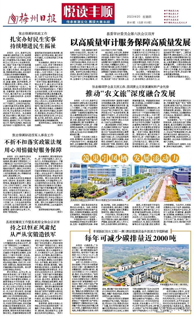 通过现场调研、听取汇报等方式,张志锋对丰顺县文化广电旅游体育工作表示充分肯定。他认为,县文化广电旅游体育系统认真贯彻落实中央和省市决策部署,对标县委十四届二次、三次全会和县两会工作安排,坚持文化赋能、旅游带动、体育牵引,推动文化、旅游、体育在更广范围、更深层次、更高水平上深度融合,让文旅体产业向更高质量迈进。希望继续发扬成绩、总结经验,为丰顺现代化建设作出新的更大贡献。