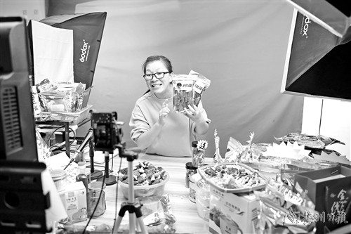 近年来,福建省宁德市依托丰富的山海土特产资源优势,加快农村电商创业园和电商直播基地的建设,不仅促进了消费,也助力年轻人创业就业和群众致富增收,推动乡村振兴和经济高质量发展。图为4月19日屏南县电商创业者杨晨芬在直播销售土特产。 (新华社发)