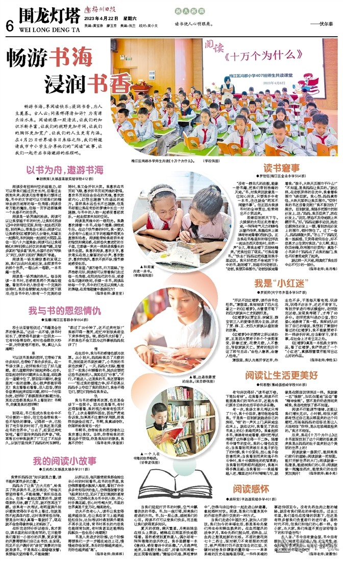 畅游书海,享阅读快乐;浸润书香,为人生奠基。古人云:问渠哪得清如许?为有源头活水来。阅读就像一股清流,让我们的知识不断丰富,让我们的视野更加开阔,让我们的胸怀更加宽广,让我们的人生更有内涵。在4月23日世界读书日来临之际,我们特邀请我市中小学生分享他们的“阅读”故事,让我们一起开启书海遨游的旅程吧。