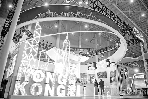 4月22日,观众在香港馆内参观。