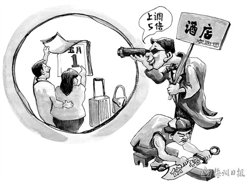 “五一”假期即将来临,人员未动,房价先涨。4月21日,有媒体记者查询了西昌、丽江、大理、西双版纳、西安、杭州等热门旅游城市发现,酒店价格普遍上涨,有的酒店价格甚至上调了5倍,网友直呼被“酒店刺客”劝退。 林勉/图