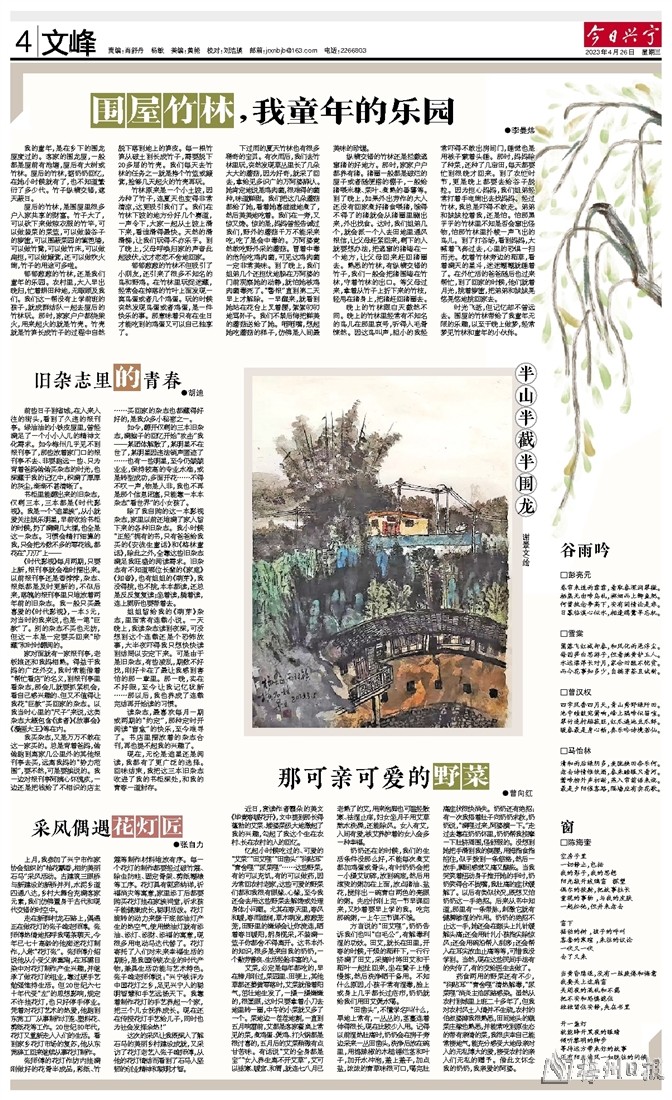 郁郁葱葱的竹林,还是我们童年的乐园。农村里,大人早出晚归,忙着耕田种地,无暇顾及我们。我们这一帮没有上学前班的孩子,就成群结队一起去屋后的竹林玩。那时,家家户户都烧柴火,用来起火的就是竹壳。竹壳就是竹笋长成竹子的过程中自然脱下落到地上的笋皮。每一根竹笋从破土到长成竹子,需要脱下20多层的竹壳。我们每天去竹林的任务之一就是挎个竹篮或簸箕,捡够几天起火的竹壳再玩。