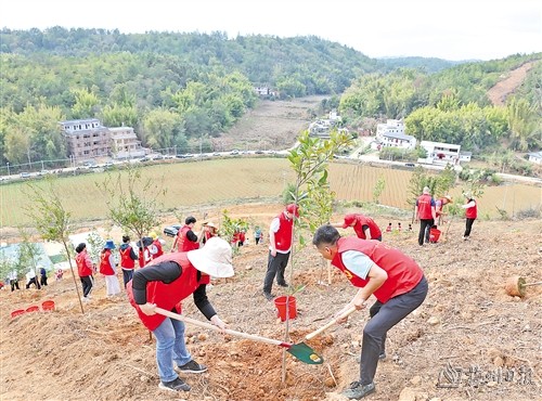 活动中,领导干部与志愿者一起挥锹铲土、填土育苗,围堰踩实、提桶浇水,大家密切配合,认真细致地完成好植树的每一道工序,现场一派热火朝天的繁忙景象。忙碌过后,一棵棵树苗迎风挺立,把小山坡装扮得更加生机勃勃、绿意盎然。此次活动在兴宁全市上下掀起了积极参加植树造林的热潮,为推进兴宁生态保护和高质量发展助力添彩。