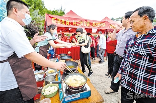 “圩日”在客家人眼中,是约定俗成的集市交易的传统日子。南口镇一直延续着南口、瑶上、荷泗三个片区的“赴圩”传统,每逢农历一、四、七日为南口圩,每逢农历三、六、九日为瑶上圩、荷泗圩。4月22日至24日,梅州日报社2023年圩日活动在美丽的南口镇侨乡村举行,弘扬客家圩日文化的同时,让更多游客走进南口、品味南口、感受南口,进一步释放消费潜力,助力农特产品推广,增加人民群众收入,激发乡村振兴内生动力,50家参展的农户和企业每天展位前询问和购买的市民都是络绎不绝。来自比利时的Max慕名而来游览侨乡村的客家围屋,正巧遇上南口镇圩日活动,他不时拿出手机拍摄舞狮、鸣锣开圩、客家歌舞表演等,并在逛圩日时品尝了客家传统美食发粄,对客家传统文化和客家围屋建筑赞不绝口。
