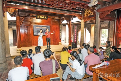 4月29日上午,由市文化广电旅游局主办、中国客家博物馆承办的“品客家文化·赏梅州非遗”——2023年“相约周六”文化惠民活动在市非遗展示馆举行。省级非遗项目客家山歌剧代表性传承人曹艳常、国家一级演员潘倩等文艺工作者接连带来大型山歌剧《等郎妹》选段表演、松口山歌演唱等节目,吸引了不少游客和市民前来欣赏,现场不时响起热烈的掌声。“台上的老师还一句句教我们唱客家山歌,感觉这个演出互动性很强,非常有意思。”来自潮州的游客曾先生称赞道。