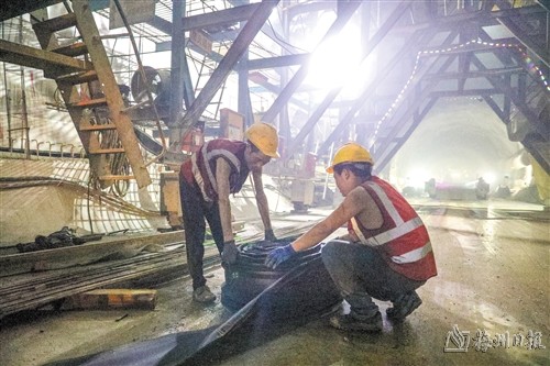 春夏相交之际,阵雨连连。日前,记者驱车来到梅龙高铁中铁十二局集团2标项目何公塘隧道,机械轰鸣的施工现场呈现出一派热火朝天的景象。80多名高铁建设者日夜奋战在施工一线,与时间赛跑,全力推进项目进程。
