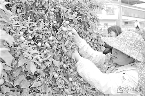 走进径南镇,放眼望去,村民房前屋后栽种了不少李树,圆润饱满的青红色李果挂满枝头,在阳光的照射下显得愈发诱人。果农们熟练地在树下采摘、装袋,脸上洋溢着丰收的喜悦。“近段时间成熟采摘的是三月李、三华李,由于春季较旱,今年三月李产量略有减少,不过品质更好,果实个头更大,价格也比去年高。”兴宁市径南镇顺景种养专业合作社负责人幸新萍是李果种植大户,共种植了700多亩李树,有三月李、三华李、四月李、硬枝三华李、芙蓉李等多个品种。“不同品种李果的成熟期有所不同,近年来我们不断丰富李果品种,目前基地李果采摘期能持续到七八月份,销售期大大延长。”幸新萍表示,采收的李果主要销往揭阳、汕头、普宁等地。