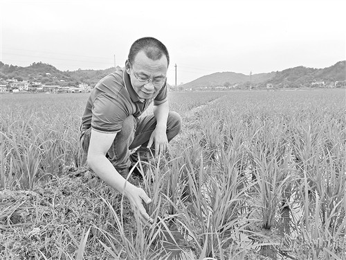罗新辉出生在农民家庭,自小他就对土地有着深厚的感情。高中毕业后,他没有像村里大部分年轻人一样选择外出打工,而是留在家乡大坪镇务农。2010年他敢为人先在大坪镇租种抛荒地,2011年联合5位种粮大户注资250万元成立了兴宁市润丰农业专业合作社,开始集约化、规模化水稻种植。“事实上,发展的道路并不顺利。”罗新辉回忆道,抛荒地沙石成堆、土质贫瘠,改造土地不容易。光是平整土地就花了近7个月时间,用坏了2台旋耕机、700多张旋耕刀片。“做农业投资大、周期长、回报慢、风险高,2012年、2013年接连两年都遇到了强降雨,我的田地被浸,损失严重。”不过,深爱着农业事业的罗新辉从未想过放弃,如今他的水稻种植规模已经扩大至1000多亩。