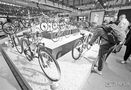 5月5日,观众在第31届中国国际自行车展览会上参观。