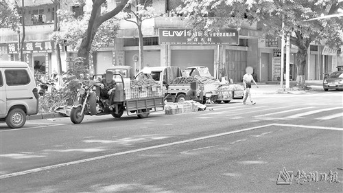 本报讯 (记者陈坚平)近日,有市民向本报《民生一线》栏目反映,梅城鸿利路和老机场路存在摊档占道经营的不文明现象,希望有关部门对此类行为进行治理。