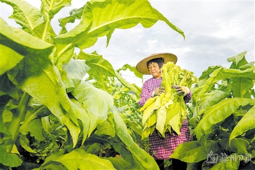 5月5日,记者在高陂镇坪溪村看到,在烟农郑汉能的烟田里,一片片碧绿肥壮的烟叶迎风摇曳,工人们正将成熟的烟叶分层次采摘。“今年种了近400亩烟叶,预计6月中旬采收完,除去人工和成本大概有60万元收入。”郑汉能说,烟叶采收完后,紧接着就种晚稻,烟稻轮作,这样不仅能降低成本,还能减少病虫害的发生,改善烟地土壤,实现产量质量双提升。