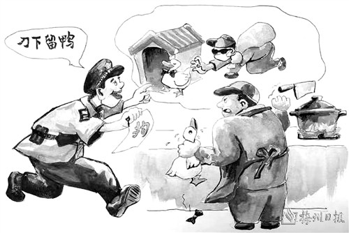 近日,上海一只正在自家花园散步的宠物柯尔鸭,突然被陌生人抱走,差点被做成“老鸭煲”。民警在接报后1小时内成功在嫌疑人晚饭前将其抓获,救下了锅边的这只宠物鸭。目前,违法人员王某因盗窃被松江警方依法行政拘留。 林勉/图