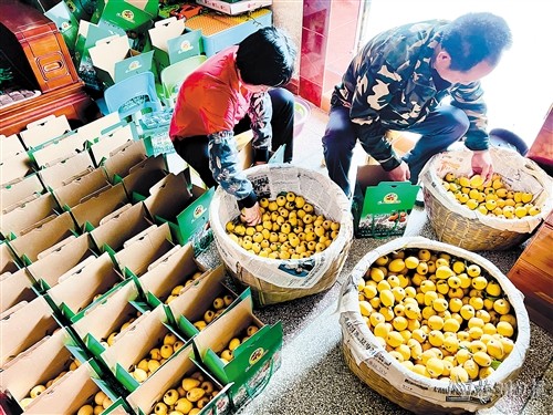 枇杷一年一收,一棵树可以收获30多斤果实,有的多一些,全部可收获1000多斤。说到销路,余叔一点都不愁。余叔在朋友圈和抖音一发布,马上就有订单。熟悉的、不熟悉的,要一箱的、十箱的,省内、省外的,很快就销售一空。来自北京的何先生每年都要订购100箱,家里人吃,更多是送朋友。“个头儿大,口感好,难得一遇。” 何先生对路途遥远不以为意。