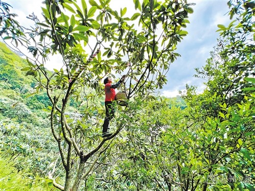 余叔没有外请工人帮忙采摘,从采摘到装箱、打包,都是夫妻俩亲力亲为。瞧他俩虽都两鬓斑白,但爬起树来,那灵活度丝毫不亚于年轻人。只见菊姨手紧紧抓住树干,纵身一跃,双手借力,身体就爬上了树干。利索地采摘,不一会,就摘了一篮子。“人踩在纤细的树枝上,一边选果一边摘果,稍有不慎就会从树上摔下来。受伤是常有的事。”菊姨介绍道。