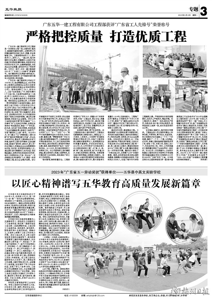广东五华一建工程有限公司工程部是一支活跃在工程一线,以能吃苦、能战斗、能奉献而著称的团队,主要负责公司所属在建项目的施工技术、质量、安全等管理工作。工程部现有成员21人,其中党员9人,团员2人。一直以来,他们牢固树立安全意识、质量意识,以坚忍不拔的毅力和团结拼搏的精神,积极抓好创优和技术攻关工作,业绩荣誉显著,为促进企业安全质量上新台阶作出了积极贡献。今年五一前夕,五华一建工程部获2023年“广东省工人先锋号”荣誉称号。他们誓言将以此荣誉为新的起点,继续发扬吃苦耐劳、甘于奉献的团队精神,攻坚克难、再创佳绩。