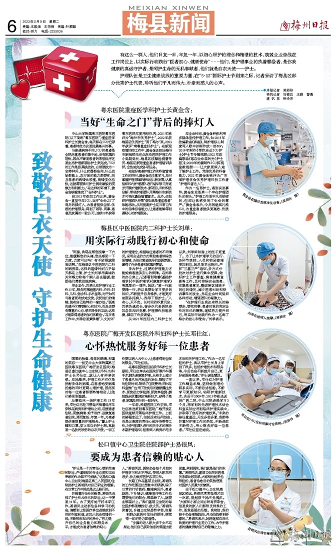 护理队伍是卫生健康战线的重要力量,在“5·12”国际护士节到来之际,记者采访了梅县区部分优秀护士代表,聆听他们平凡而伟大、朴素而感人的心声。
