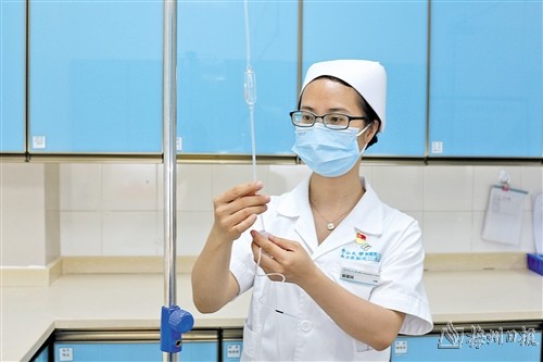 怀揣着对生命的敬畏,易银凤选择了护士作为自己的职业,这一干便是14年。为了更好地干好本职工作,易银凤主动抓住各种学习的机会,请缨到上级医疗单位进修或到不同的科室轮值,还加入抗击疫情的一线,不断吸收知识的养分。“努力提升自己的业务能力和服务水平,才能成为患者信赖的贴心人。”易银凤说,医院也会每个月组织护理学习和水平考试,带领大家共同进步,协力做好医护各项工作。