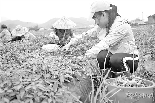 “辣椒基地‘落地’后,解决了村中近百名村民就近就业问题。在辣椒种植和采收旺季,最多有近150名群众在此务工,切实增强了大家发展产业的信心。”丘志坚说。