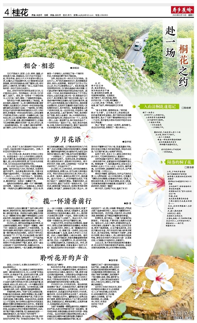 “春令有常候,清明桐始发。”桐花被称为“五月雪”。这与我在车上那段莫名其妙的遐思竟神奇地暗合,莫不是那纷纷扬扬飘落的雪花,是为了与那个激情青春的纪念日作一个应和,是对曾经为使命而战的年轻的生命的无声祭奠!