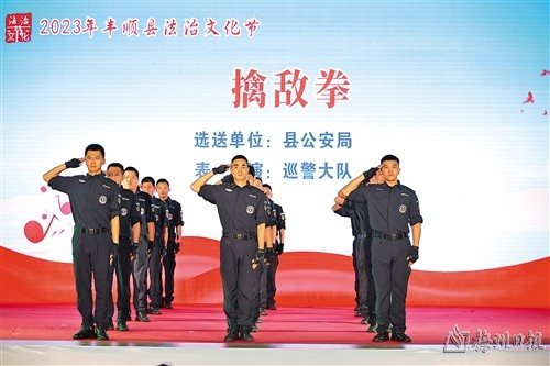本报讯 5月4日,由县新时代文明实践中心指导,县委宣传部、县委政法委员会、县普及法律常识办公室主办,县融媒体中心协办的丰顺县首届法治文化节活动在县会展中心举行,活动以“法治护航高质量发展”为主题,旨在深入学习宣传贯彻习近平法治思想,展示我县法治文艺作品创作的丰富成果,凝聚推进政法工作现代化的精神力量。