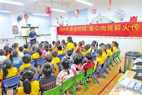 本报讯 (记者江婵) 5月12日上午,梅州市公路事务中心、梅江区委统战部、西郊街道黄泥墩社区、中国建筑一局、学吧教育在梅江区城西幼儿园联合举办“党的故事进校园·童心向党薪火传”主题教育活动,为孩子们带来一堂生动的红色教育课。