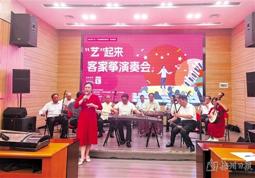 本报讯 (记者林德培)5月14日上午,“艺”起来客家筝演奏会在市文化馆群星剧场举行(如上图,林德培摄)。本场演奏会由省文化和旅游厅指导,省文化馆、省文化馆联盟、市文广旅局主办,市文化馆承办,梅州客家筝艺术团协办。