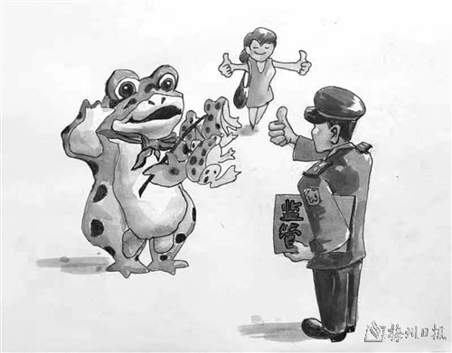身穿青蛙服,手里提着一群“小青蛙”,脖子上挂着收款二维码,最近,活跃在多地大街小巷的“卖崽青蛙”火遍网络。“这大热天穿成这样,也真是不容易,多些包容吧。”微博留言区,这条留言被点赞4万多次,网友对“卖崽青蛙”的同情可见一斑。诚然,对于“卖崽青蛙”这样的新业态从业者,相关部门既要柔性执法,又需积极引导,城市“烟火气”才能越来越旺。 林勉/图