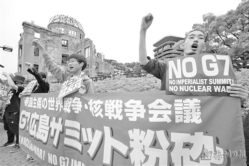 5月18日,民众在日本广岛和平纪念公园集会反对七国集团峰会。