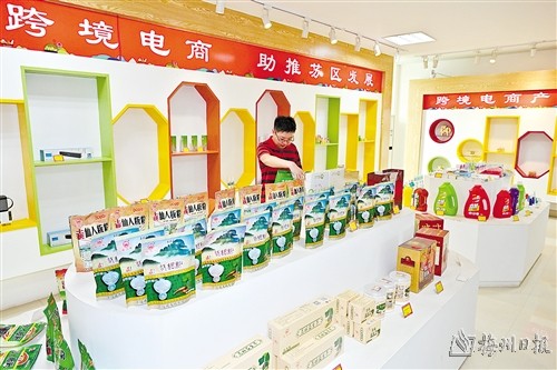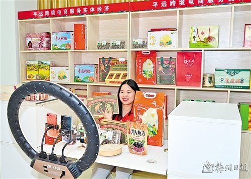 在平远县电商公共服务中心,记者来到一个专属跨境电商的展区,出口迪拜的客家炒绿茶、卖往欧美的家具、售往澳大利亚的南药梅片护肤产品等应有尽有。据县科工商务局工作人员介绍,平远县积极响应梅州跨境电子商务综合试验区建设,早在2020年7月就成立全市首家县级跨境电商服务中心,吸引有资质有能力开展跨境电商业务的企业了解相关政策、集聚业务,促进电商产业开放发展。