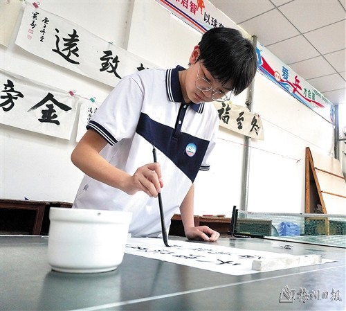 初夏的傍晚,夕阳斜斜地照进平远县田家炳中学的教学楼内。半开的窗户,让微风溜进了教室,轻轻地拂过每张青涩的脸庞。几位学生端坐在课桌前,正饶有兴致地进行象棋博弈。这之中,便有一位来自初二年级的学生吴逸琳,她不仅琴棋书画样样精通,学习成绩也一直名列前茅,是老师和同学眼中的“宝藏女孩”。去年,她荣获2022年度梅州“新时代好少年”称号。