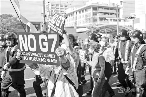连日来,日本多个团体联合多国人士多次发起声势浩大的集会游行,抗议19日至21日在广岛举行的七国集团(G7)峰会。