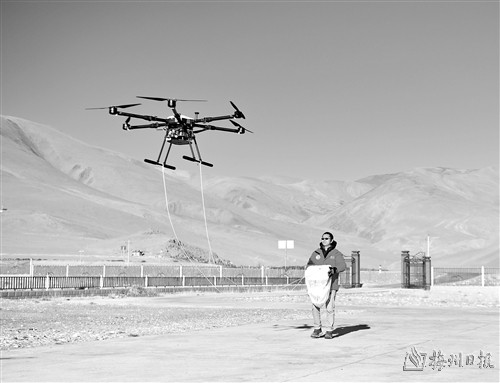 在中国科学院珠穆朗玛大气与环境综合观测研究站,科考队员放飞无人机采集空气样本(5月10日摄)。