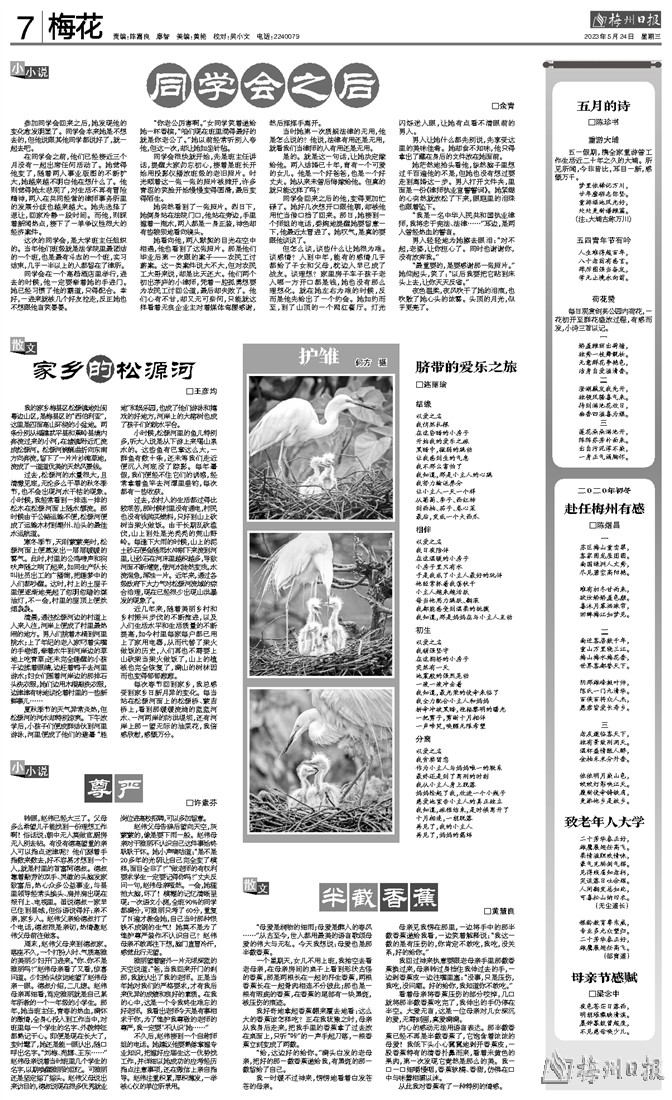 我的家乡梅县区松源镇地处闽粤边山区,是梅县区的“西伯利亚”,这里是四面高山环绕的小盆地。两条分别从福建武平县和蕉岭县境内奔流过来的小河,在墟镇附近汇流成松源河。松源河蜿蜒曲折向东南方向奔流,留下了一片片沙滩草地,流成了一道道优美的天然风景线。