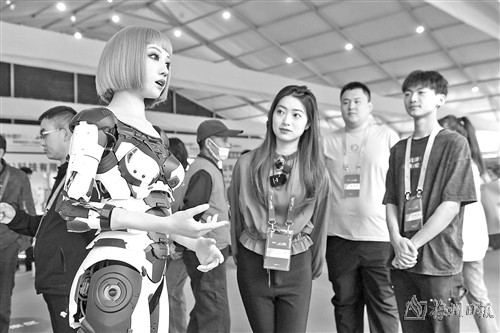 5月24日,机器人在峰会现场为观众讲解介绍。