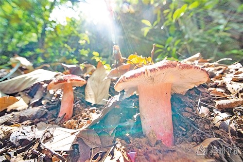 蓝坊镇山清水秀、竹影婆娑,林地资源禀赋得天独厚,素有“长寿乡中乡”美誉。其大山深处盛产红菇,是百姓餐桌上的美味山珍。时值五月,当地群众恋山采菇,往往在天亮前便爬山越坑,在阔叶树林里寻觅这“林下宝藏”。