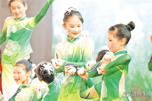 客韵飘香,情系客家。5月11日,文艺汇演在桂岭学校拉开帷幕。此次文艺汇演以“青春心向党,礼赞新时代”为主题,分小学组、中学组两场举行,共52个展演节目。其内容形式丰富多彩,涵盖舞蹈、戏剧、声乐、器乐、表演等5类,充分融合了客家艺术、红色文化、民族文化、非物质文化遗产等元素,来自城乡30多所学校共970多名小演员们身着盛装,为观众呈现了一场“视觉盛宴”。
