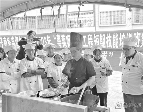 据悉,培训班由广东省电子商务高级技工学校、县供销社主办,八乡山镇人民政府、丰顺县丰泰职业培训学校、八乡山镇供销社助农服务中心协办。旨在深入落实乡村振兴战略的部署和要求,免费进行粤菜烹饪技能培训,传承粤菜饮食文化,促进就业创业,实现劳动力就业转移,助力乡村振兴。(荣丰)